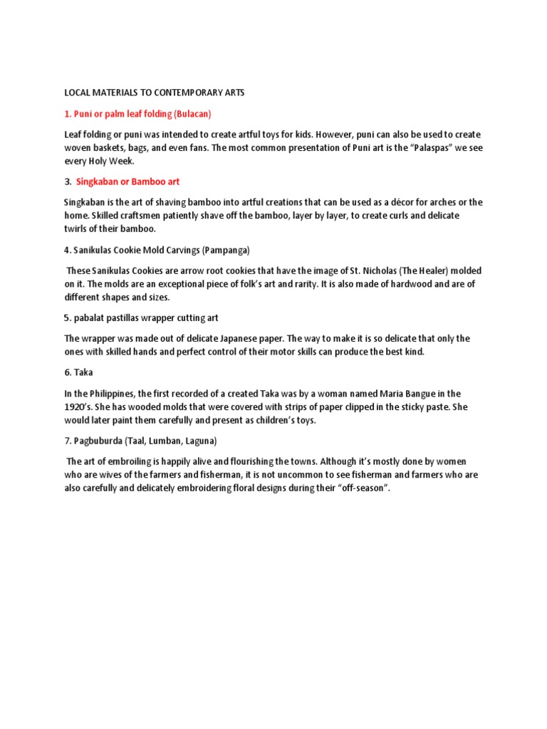 Local Materials Used As Applied To Contemporary Art. Taka was pioneered by a Paete local named. Integrative Art as Applied to Contemporary Arts Reviewer.